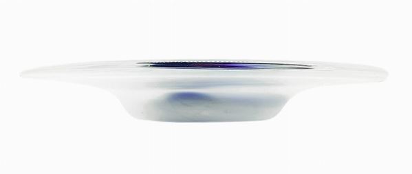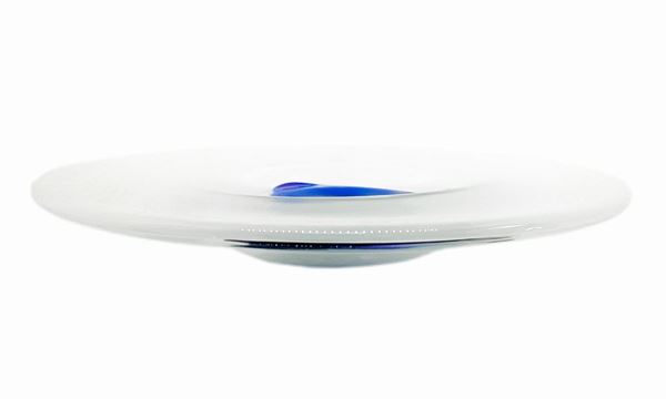 Piccolo centrotavola in vetro satinato con decoro al centro nei toni del blu, Ioan Tamaian, XX secolo