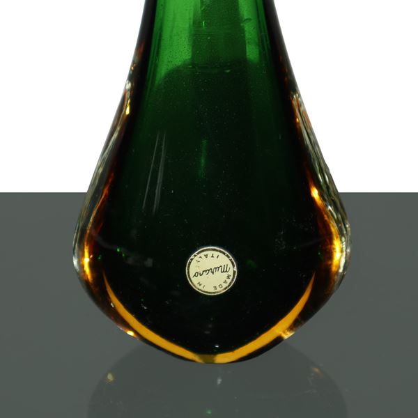 Vaso in vetro sommerso di Murano verde, anni '50/'60