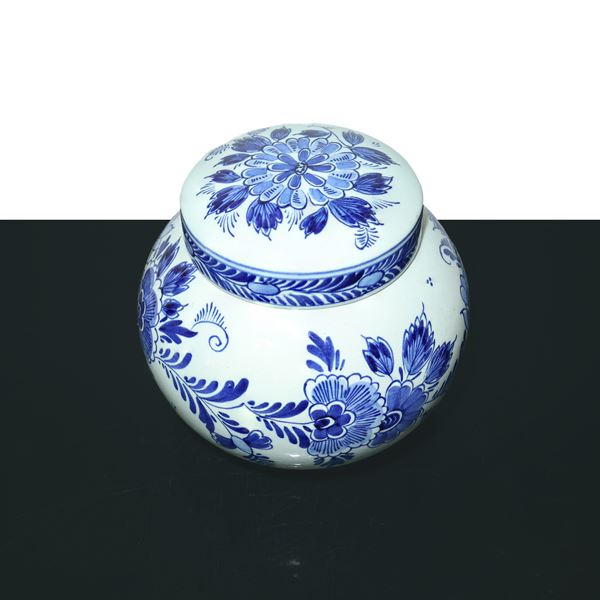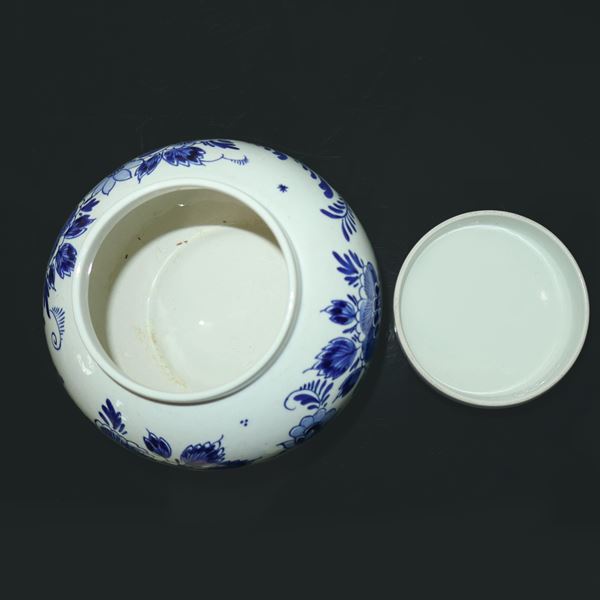 Poutiche in porcellana bianca con decori floreali blu dipinti a mano