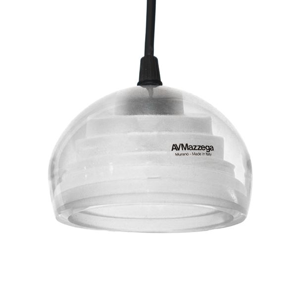 Coppia di lampade a sospensione diffusore in vetro pesante trasparente e bianco
