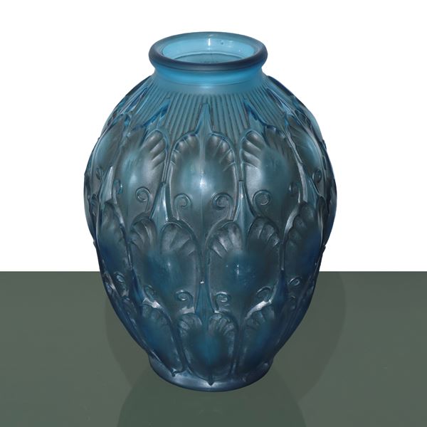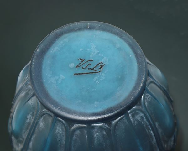 Vaso in cristallo azzurro polvere, 1925 c.ca