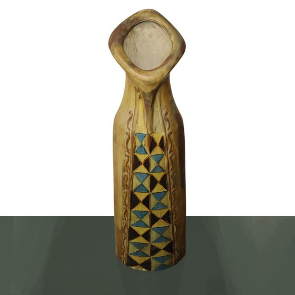 Vaso in terracotta a graffiti policromi sul fronte, prima metà del XX secolo