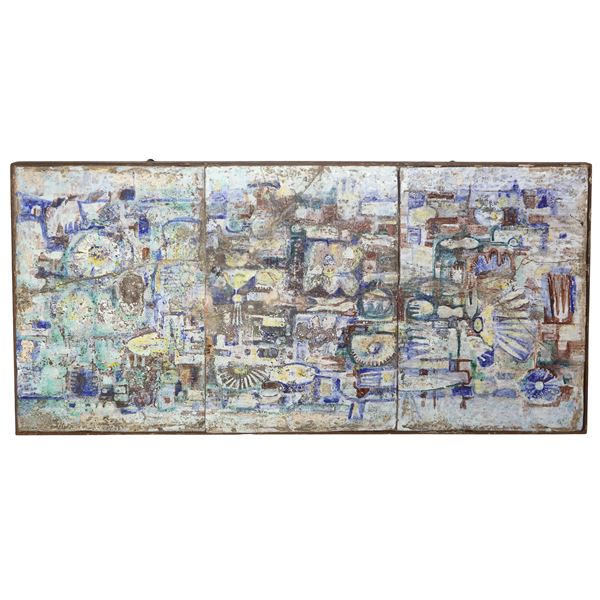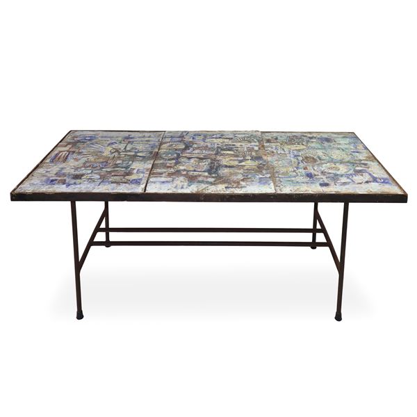 Tavolino da caffè con piano rettangolare con piastrelle colorate, anni '60
