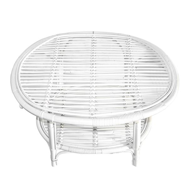 Tavolino da centro in rattan smaltato bianco a due piani