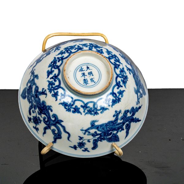 Ciotola in porcellana bianca con decori blu, dinastia Ming XVII secolo