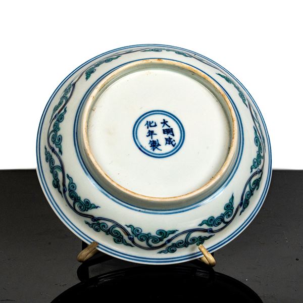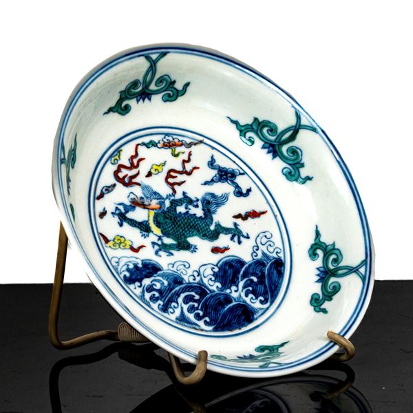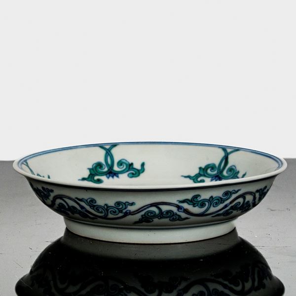 Piattino in porcellana Doucai con decori, dinastia Qing