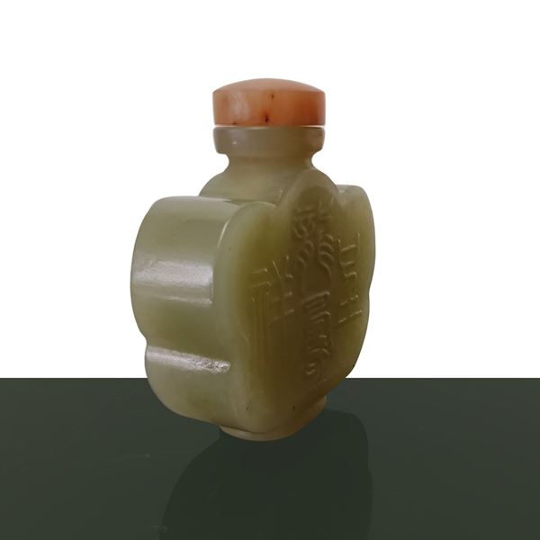 Piccola bottiglia da tabacco in giada verde, Cina XIX secolo