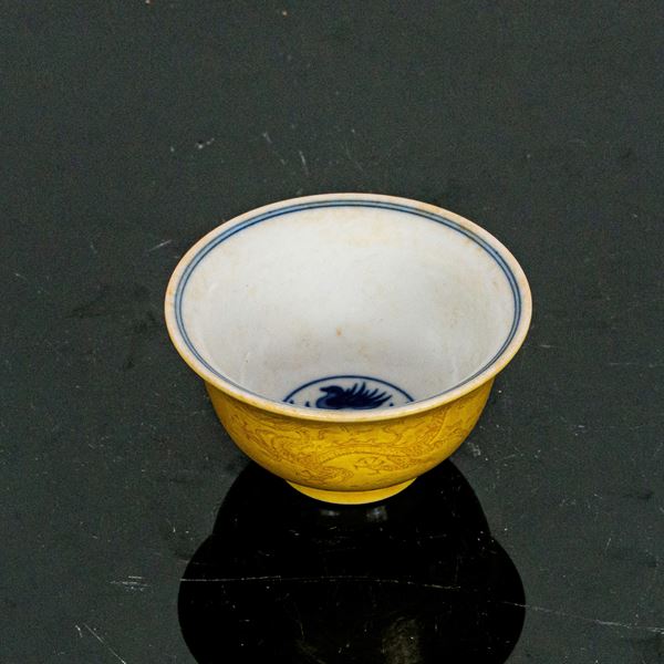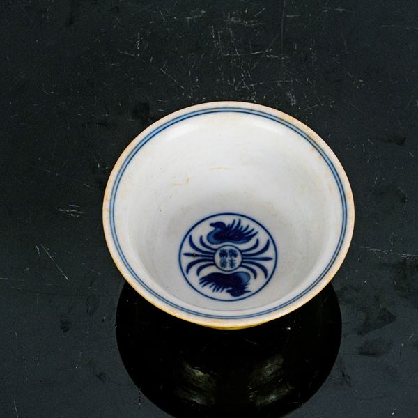 Disegno di due fenici all'interno sul fondo e iscrizione arrecante una firma