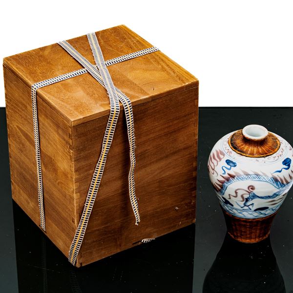 Vaso con decori di dragoni e dettagli in bamboo, dinastia Yuan