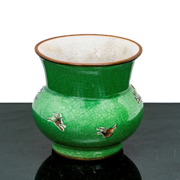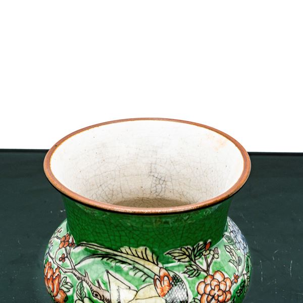 Vaso in smalto verde con decori floreali e uccelli, Dinastia Qing Zha Dou