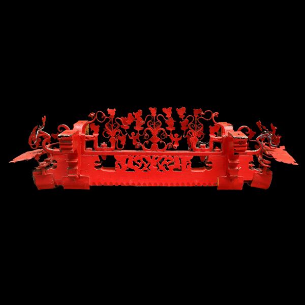 Frammento di carretto (cascia di fuso) in legno e metallo, XX secolo