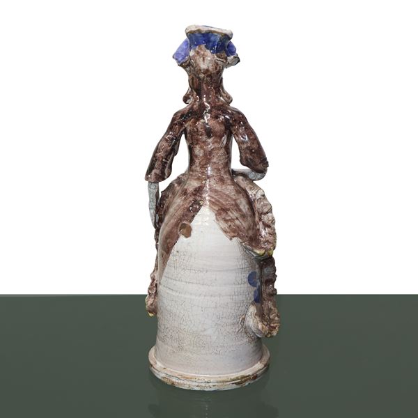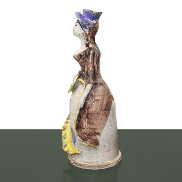 Lumiera in ceramica di Caltagirone donna con tamburello, inizi XX secolo