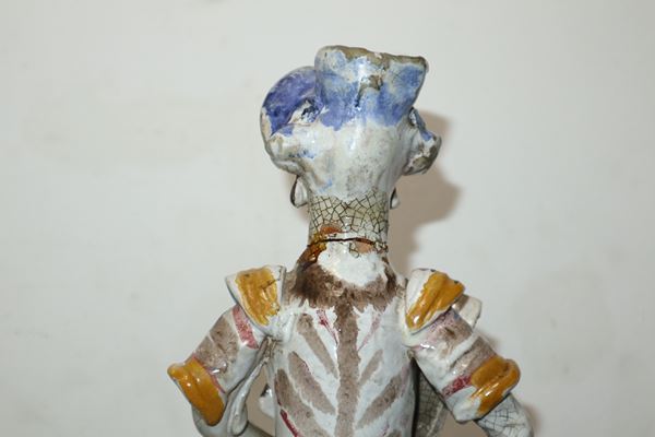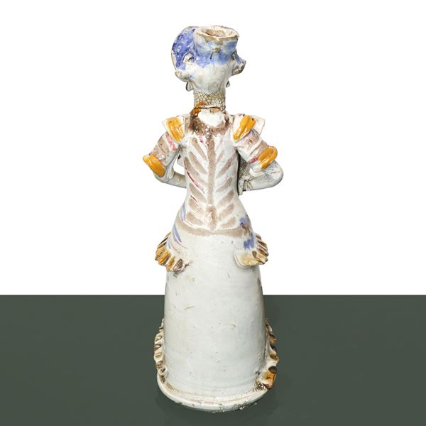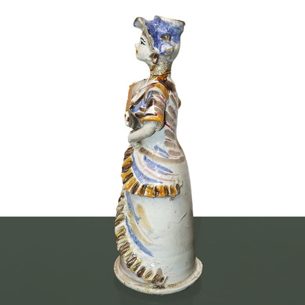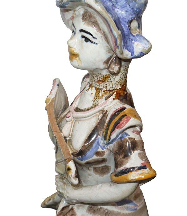 Lumiera in ceramica di Caltagirone donna con ventaglio, inizi XX secolo