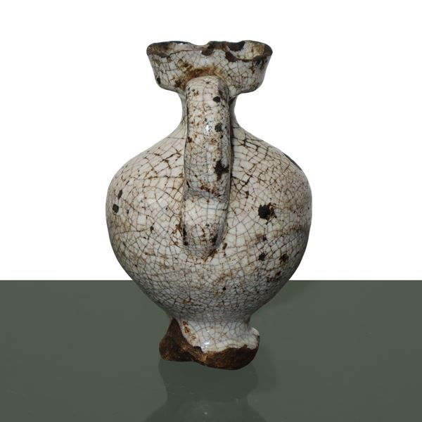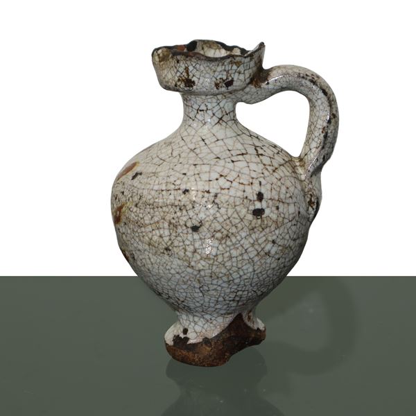Orciolo con manico in maiolica di Caltagirone invetriata decorata e smaltata policroma in pasta bianca, XVIII / XIX Secolo