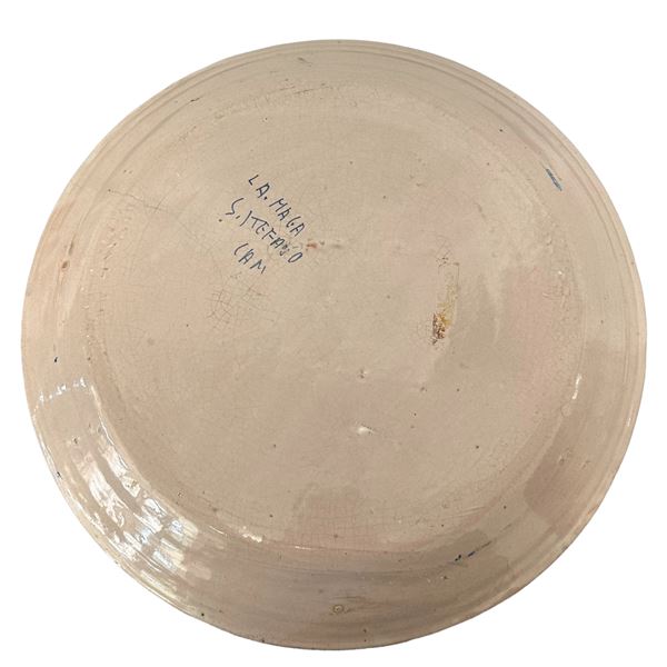 Piatto in maiolica Santo Stefano di Camastra decorato a motivi floreali blu