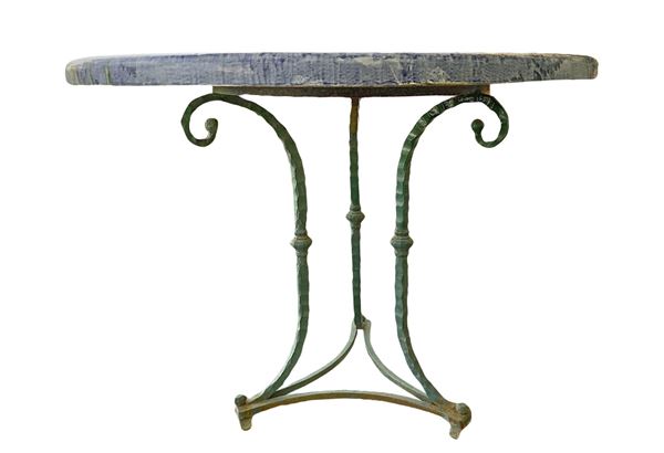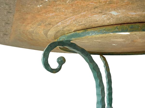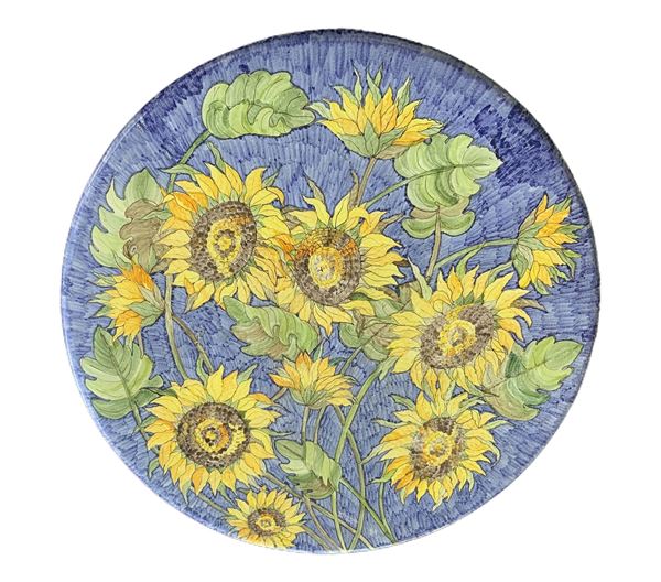 decorato in ceramica policroma con girasoli al piano. Struttura portante in ferro battuto. Segni d'uso