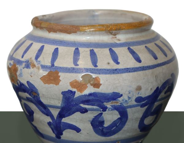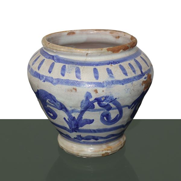 Vaso di Caltagirone decorato a larghe foglie blu, XX secolo