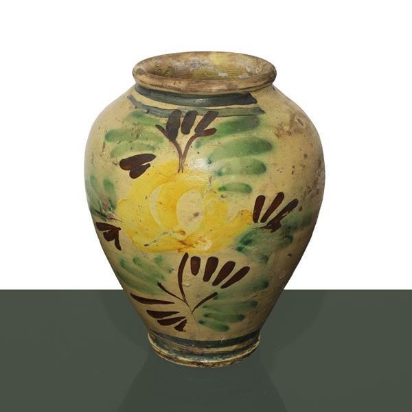 Vaso in maiolica di Caltagirone invetriata e smaltata policroma, XIX / XX secolo
