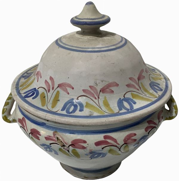 Zuppiera con manici in maiolica di Caltagirone, Sicilia, inizi XX secolo