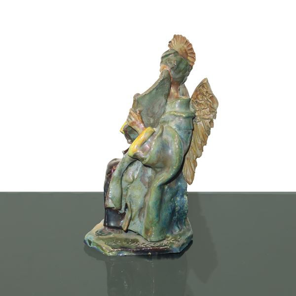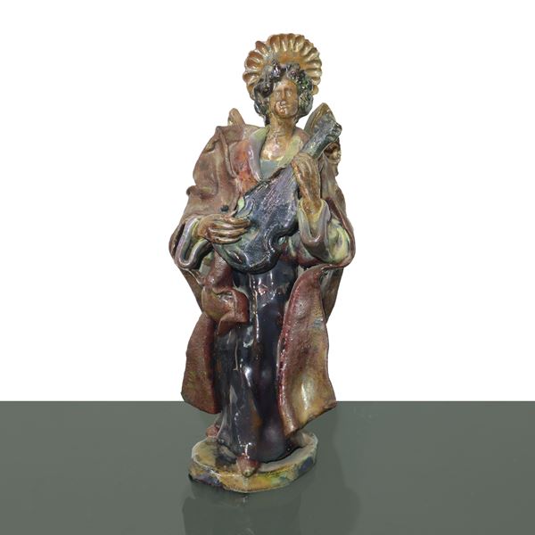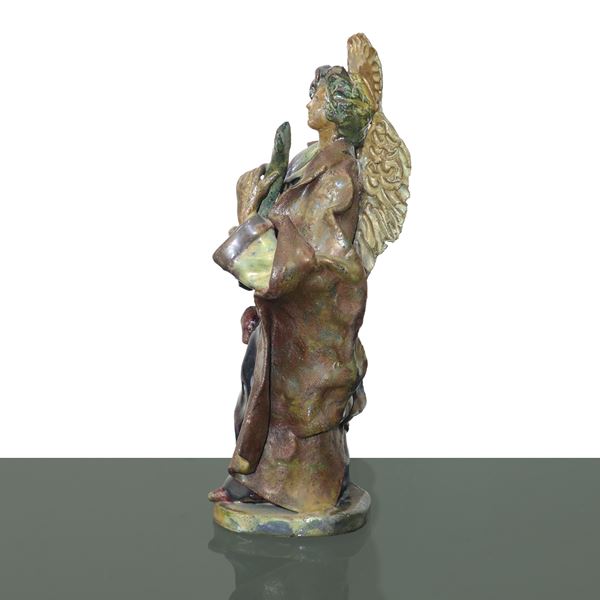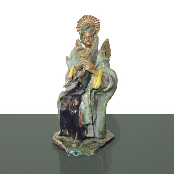 Coppia di angeli musicanti policromi al lustro, anni '40/'50