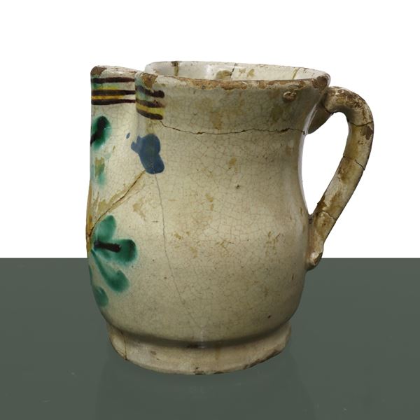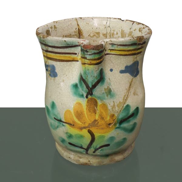 Cannata versatoio a fiori in ceramica di Caltagirone, XIX / XX secolo