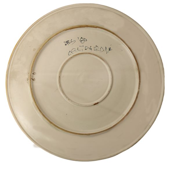 Grande piatto decorativo da muro in ceramica di Caltagirone raffigurante fiore