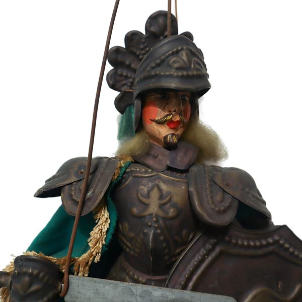 N°2 Pupi siciliani paladini con armatura in lamierino stampato e abiti in tessuto