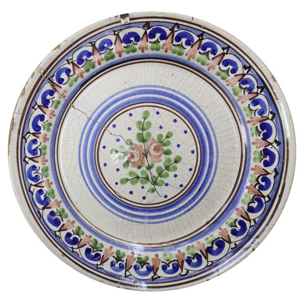 Piatto in maiolica di Caltagirone con raffigurazioni di fiori, Metà XX secolo