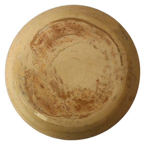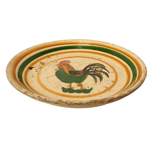 Piatto in maiolica policroma di Caltagirone con raffigurazione di gallo al centro