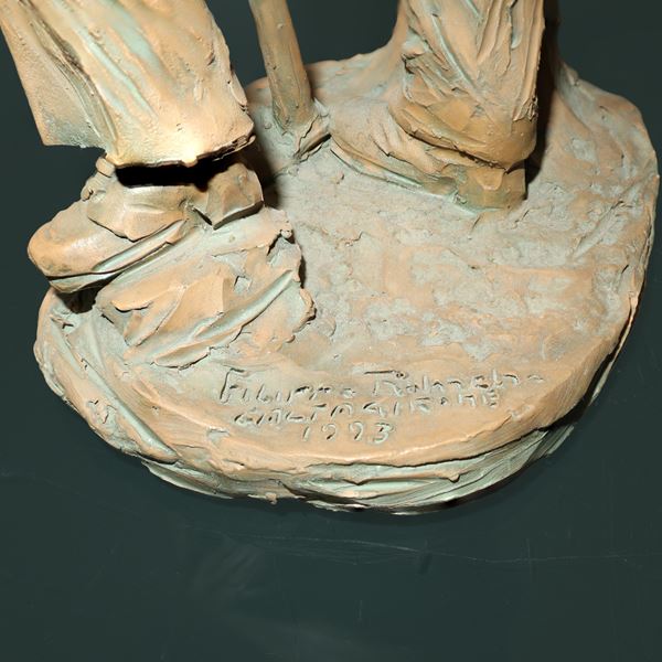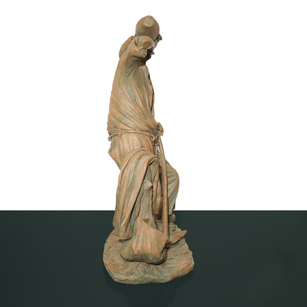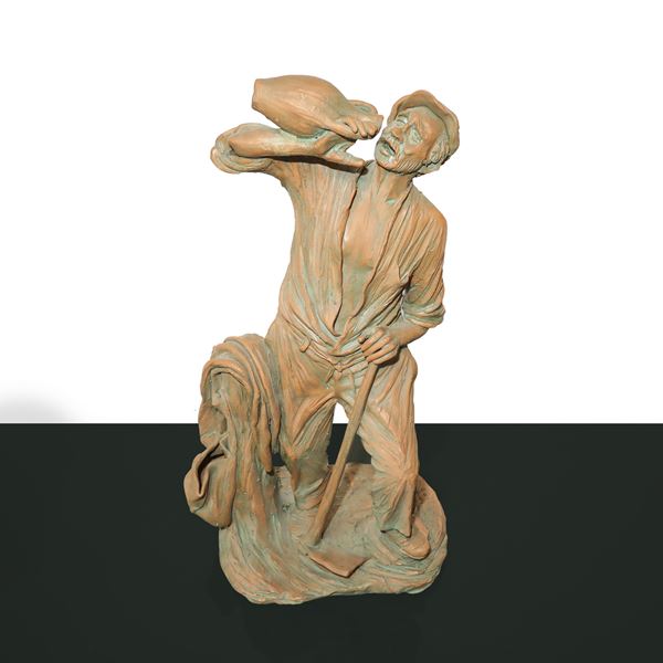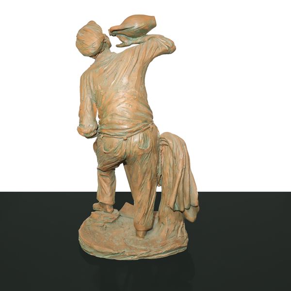 Statuina in terracotta raffigurante lavoratore con vanga