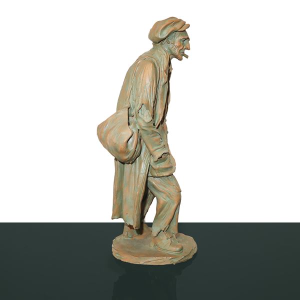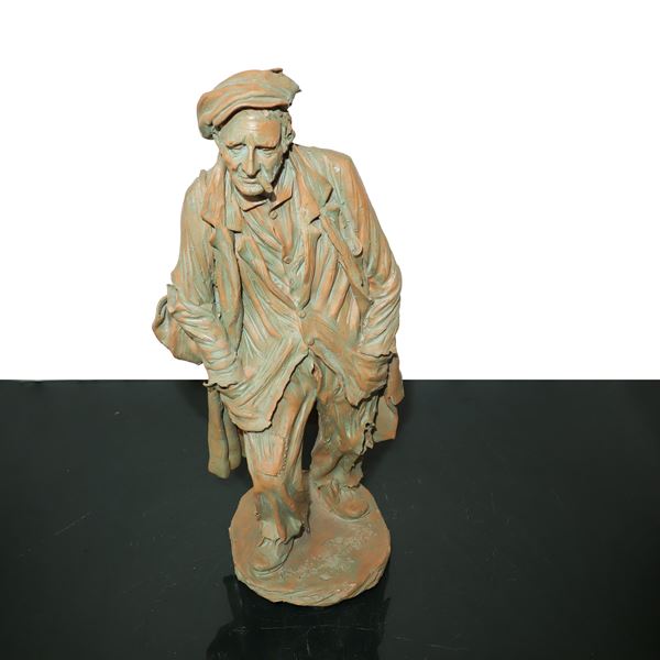 Statuina in terracotta raffigurante uomo con sigaro