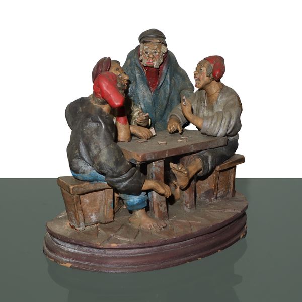SCULTURA IN TERRACOTTA ARTIGIANATO PALERMITANO: giocatori di carte, Palermo XX secolo