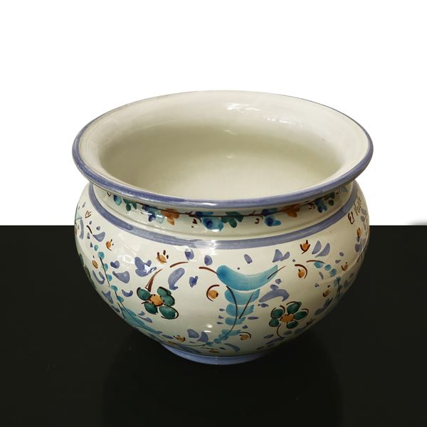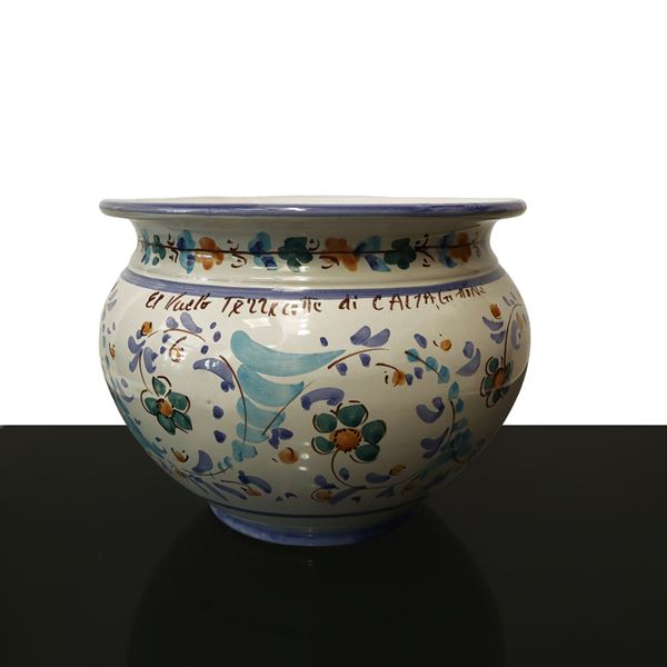 Cachepot in ceramica policroma decorata a fiori di Caltagirone