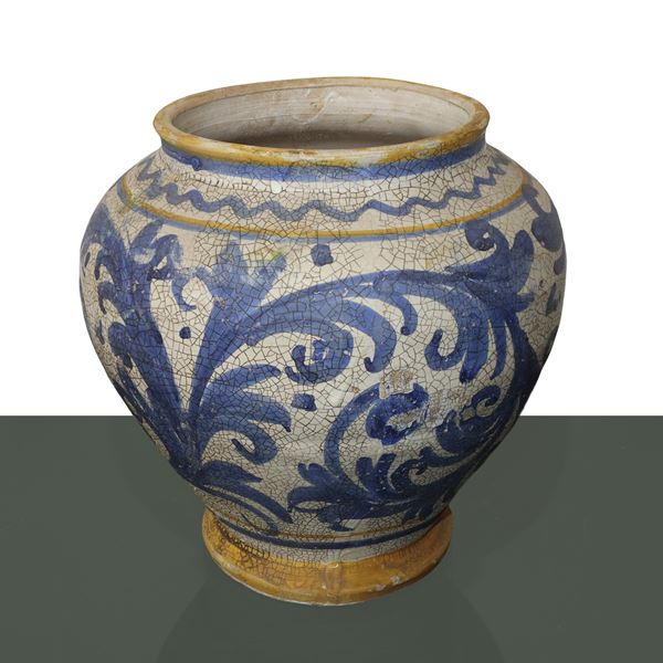 Vaso di Caltagirone fondo bianco disegni blu, Metà XX secolo