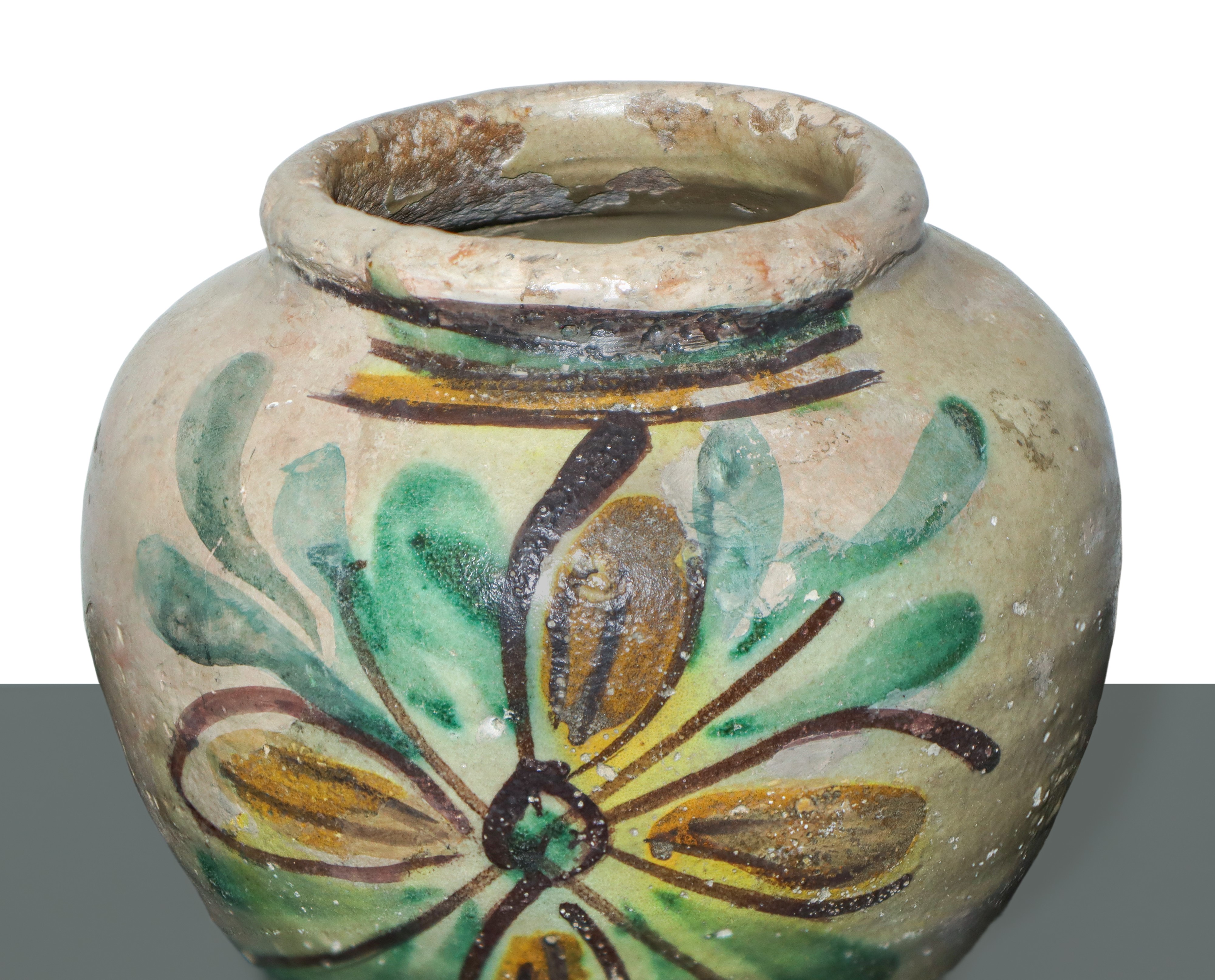 Vaso in ceramica di Caltagirone smaltato e dipinto policromo con fiore sul fronte