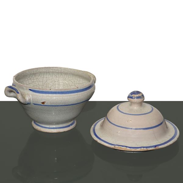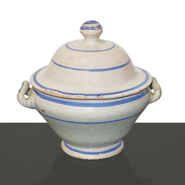 Zuppiera in ceramica policroma di Caltagirone, con decori nei toni del magenta, Fine XIX secolo