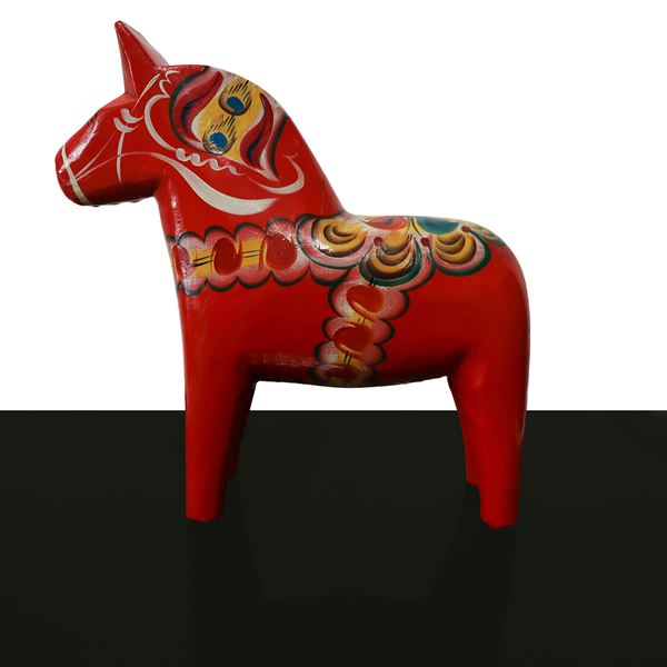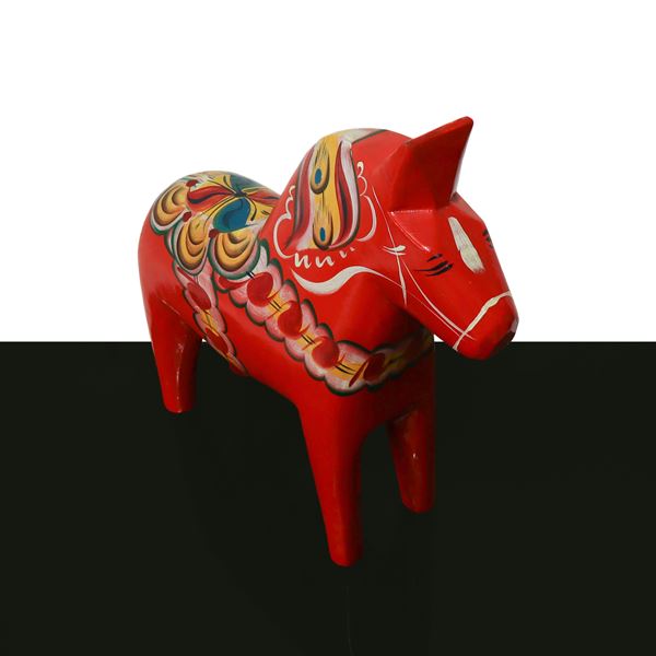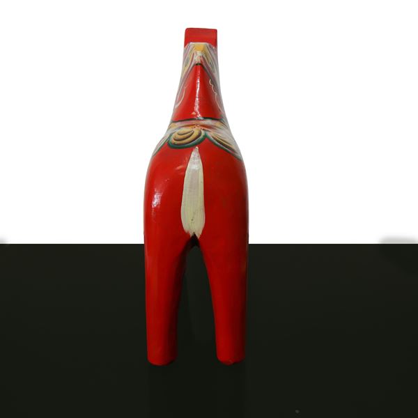 Cavallo vintage in legno rosso laccato e dipinto, Svezia anni '60
