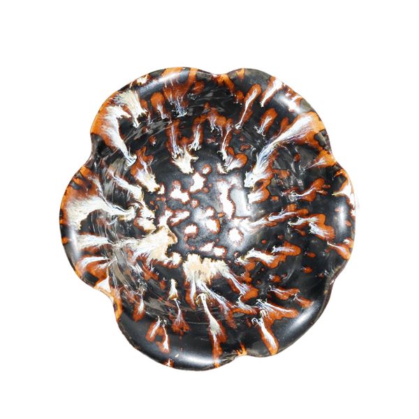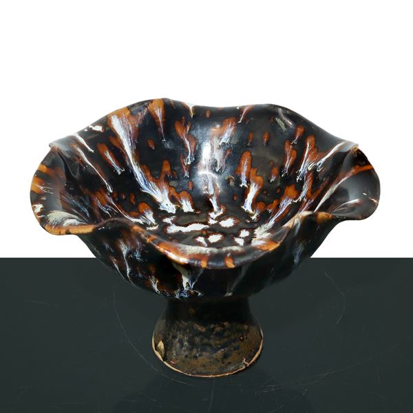 Ciotola con base alta dinastia Yuan su fondo nero decorata nei toni del marrone, bianco