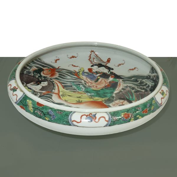 Lavapennelli con decoro policromo raffigurante personaggi, XIX sec.