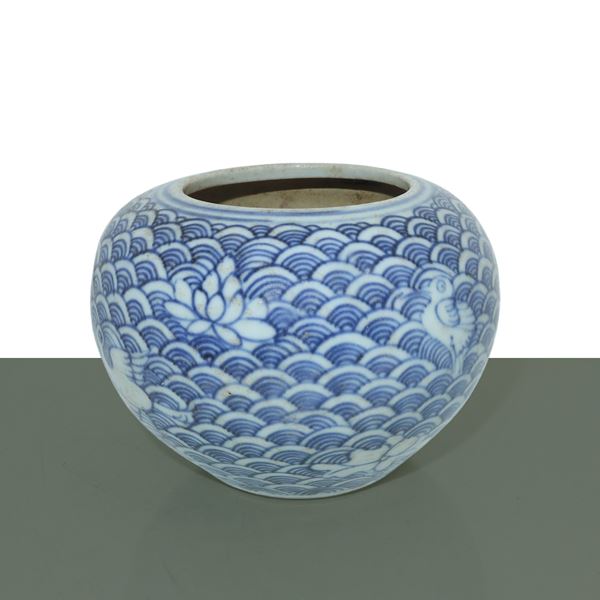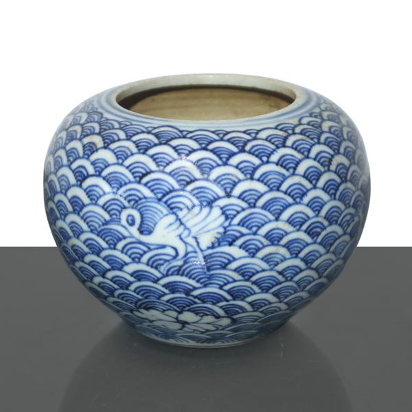 Lavapennelli nei toni blu e bianco con motivi a scaglie di pesce
