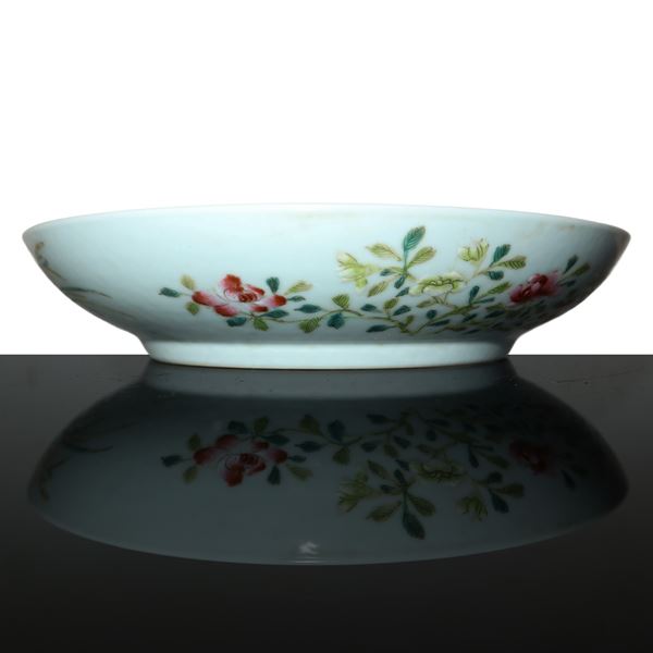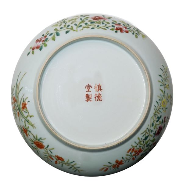 Piatto cinese in porcellana con decoro policromo sul fronte e sul retro decoro floreale, XX secolo periodo Repubblica