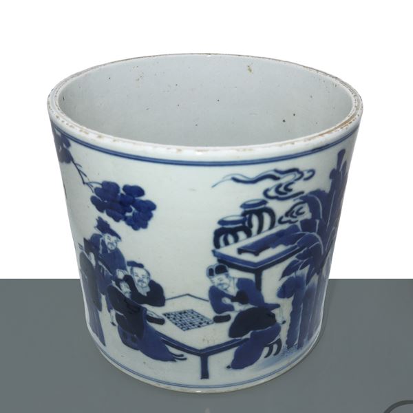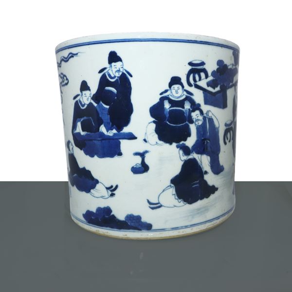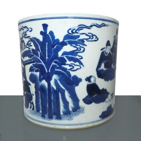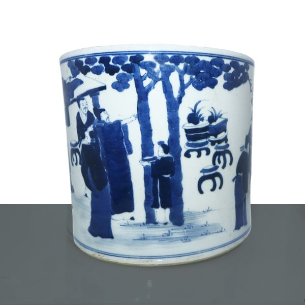 Portapenne cinese in porcellana smaltata nei toni del bianco e blu, dinastia Qing