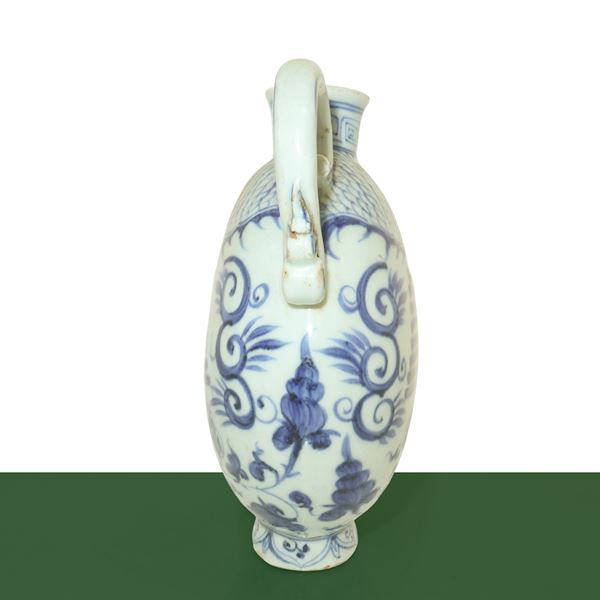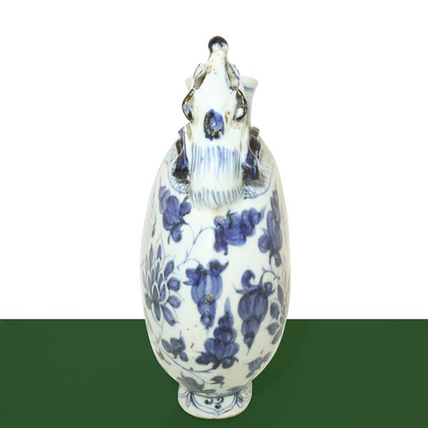 Teiera cinese modellata a forma di uccello decorata nei toni del blu e del bianco