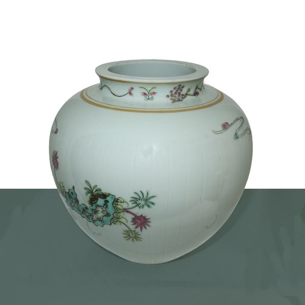 Vaso con decori policromi su sfondo bianco, Dinastia Qing