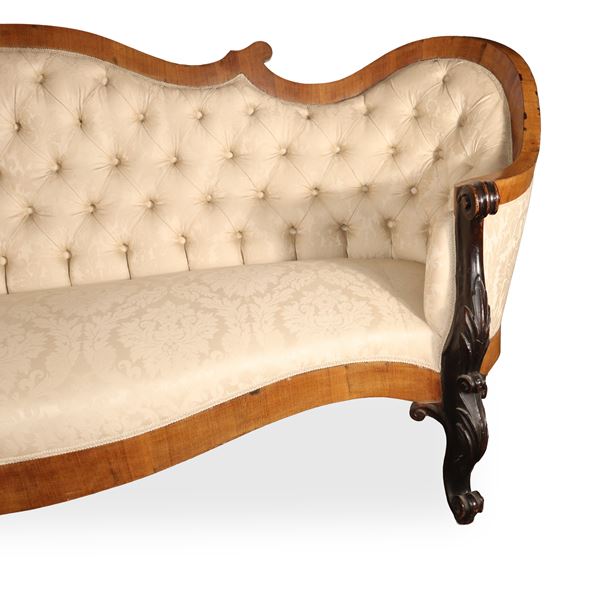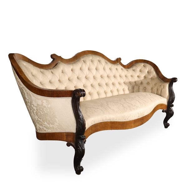 Divano Luigi Filippo tappezzeria capitonnè, Sicilia XIX secolo