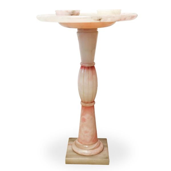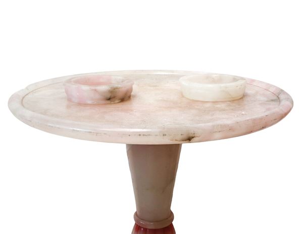 Tavolino in alabastro rosa con due posaceneri, XX secolo
