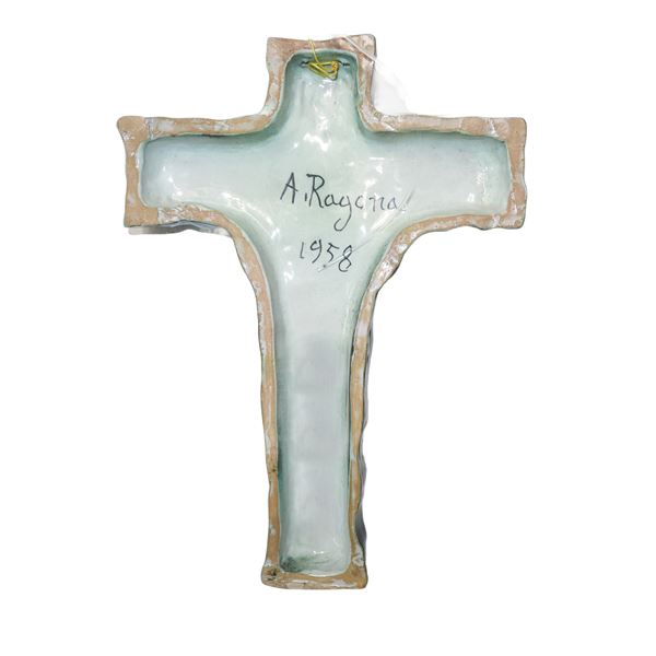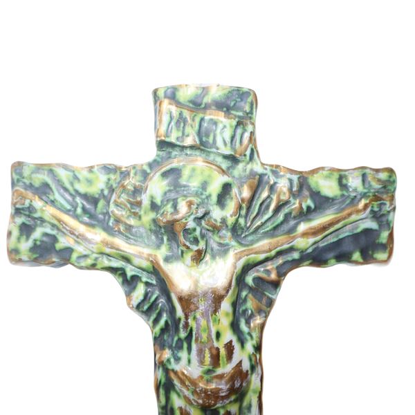 Crocifisso in maiolica invetriata di Caltagirone, 1958