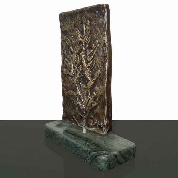 Bronzo e base in marmo verde. Firmata e titolata sul retro. Opera Unica