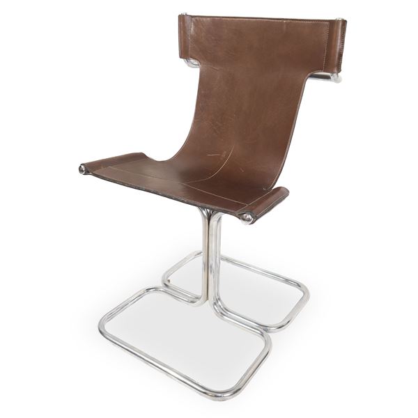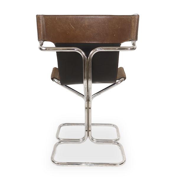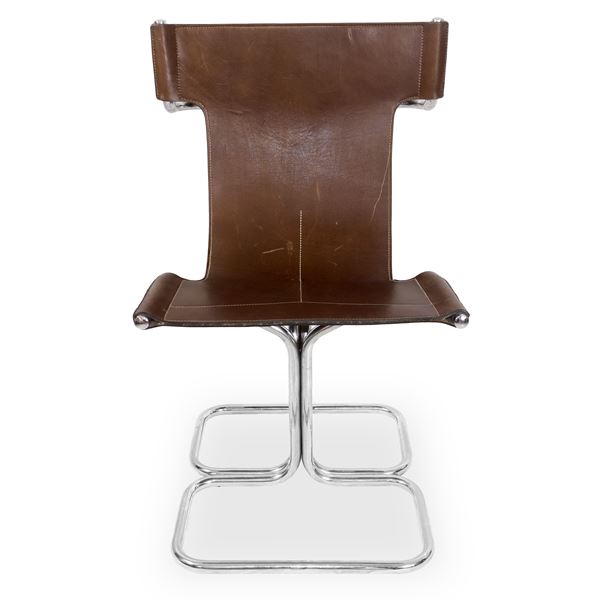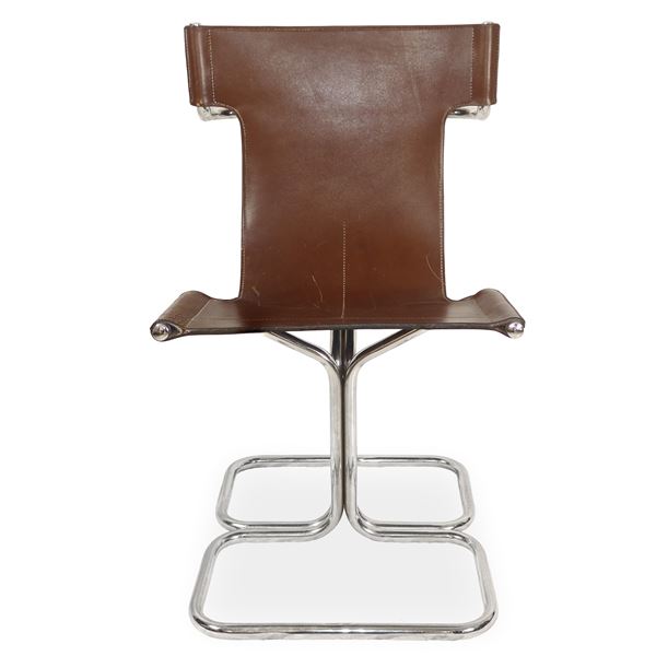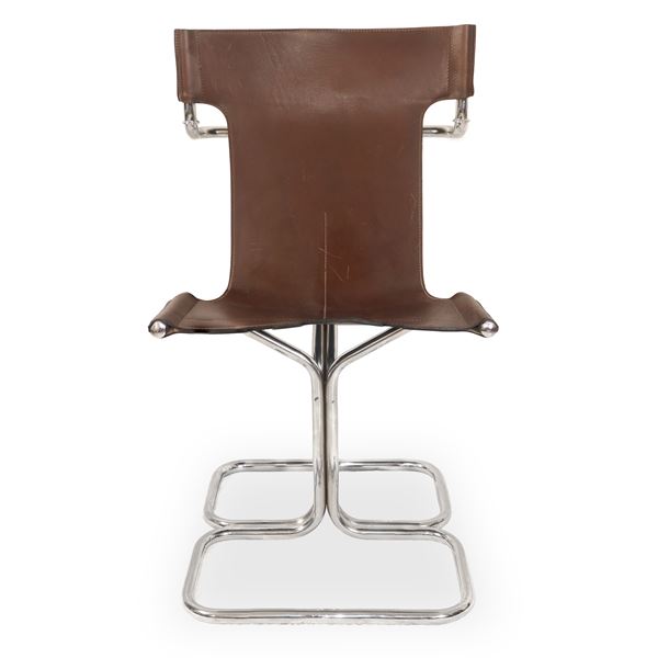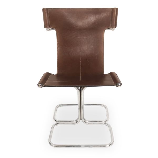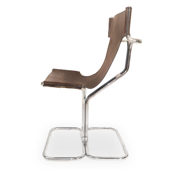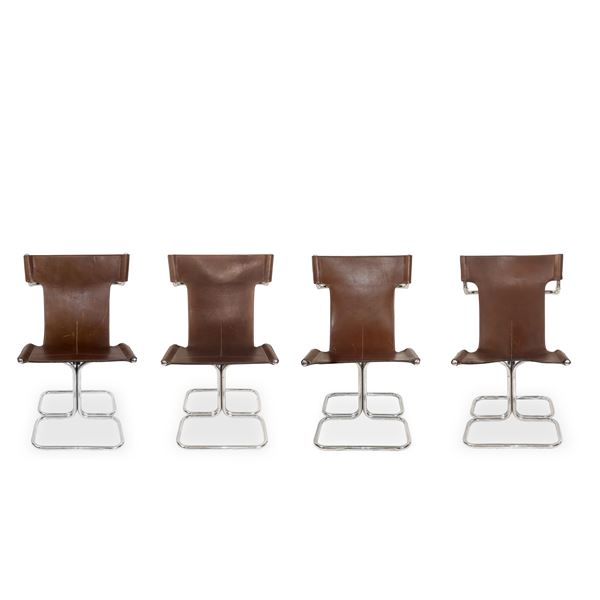 N°4 Sedie modello Topos in cuoio metallo cromato, Anni 70 ca