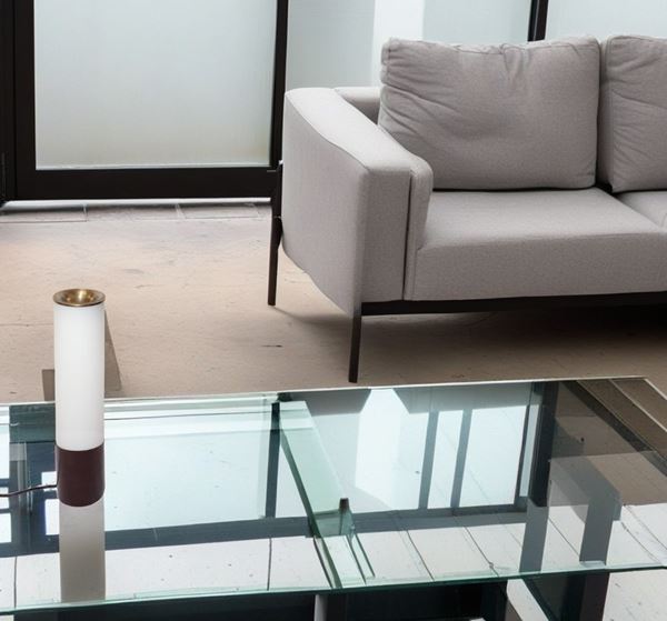 Metallo verniciato bordeaux, vetro satinato, dettagli in metallo dorato
